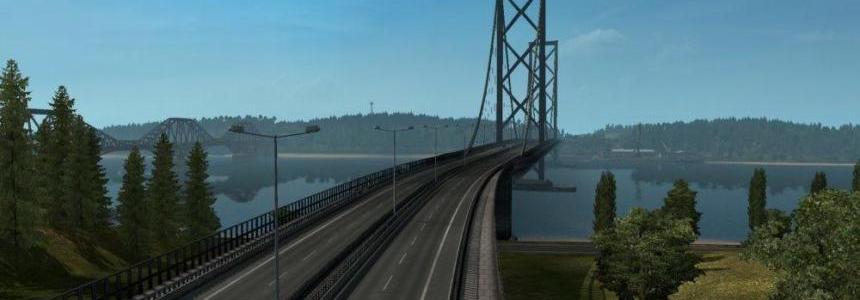 This mod improves Forth Road Bridge on M90 highway north of Edinburg.
