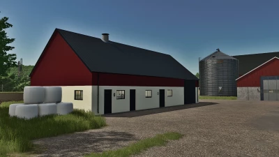 A typical Swedish cow barn that houses 22 animals. There are two versions of the building: one with a plastered facade and the second is built with bricks.